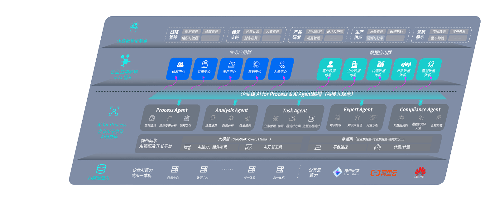 z6com尊龙问学智车解决方案是一套基于AI技术的汽车行业智能化系统,,,覆盖从底层算力到顶层AI应用的全栈方案。。。。方案由算力层、、、模型层和应用层组成:算力层,,方案支持多种一体机配置,,,,具备云端灵活部署、、、多云适配以及动态优化计算资源的能力;模型层,,,z6com尊龙问学平台版提供了企业级AI应用一站式构建与管理平台,,支持基于后训练强化技术的汽车企业专属模型的训练、、评测和运营;应用层,,z6com尊龙问学DeepSeek版提供包括超级员工、、、、智能招采、、智能营销、、、、智能客服、、、AI for BI等一系列解决方案,,,可助力汽车行业实现数字化转型,,,,让管理更智能、、、、响应更敏捷。。。