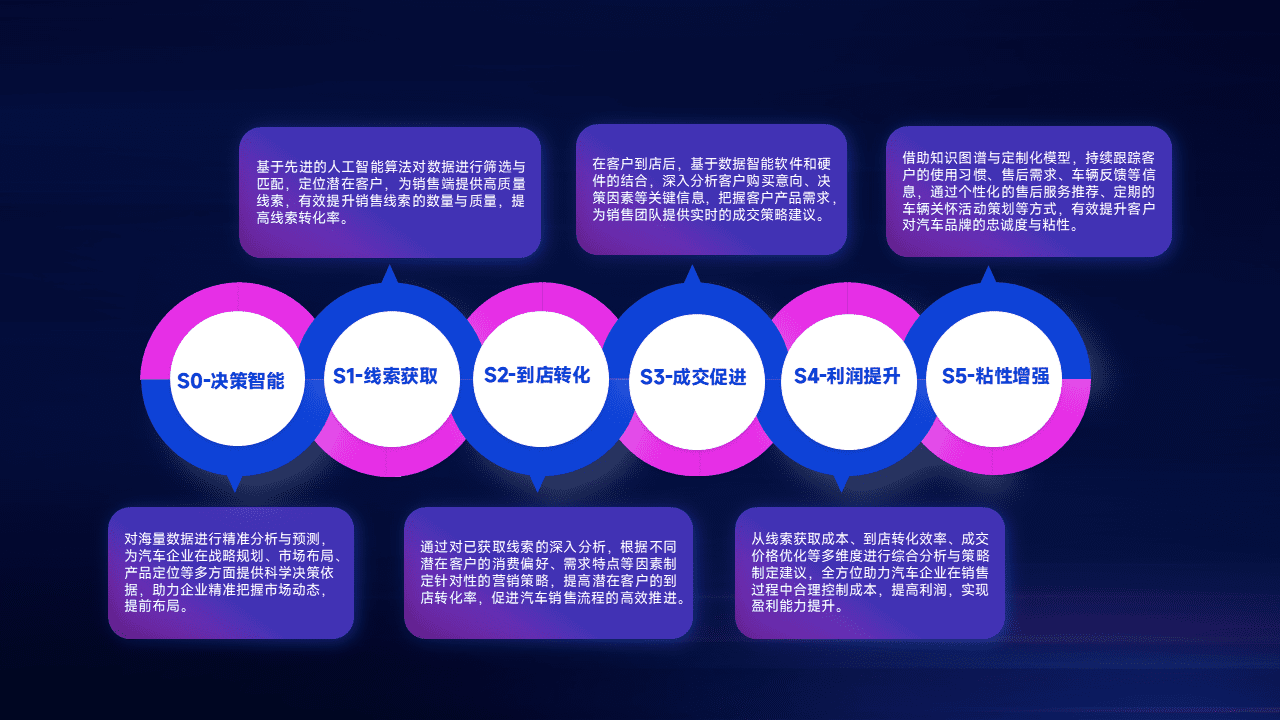 通过拓宽潜在客户来源、、、、优化线索分配并提高到店转化率,,以增强销售效率。。。。同时,,,,利用线索数据不断优化分析模型,,有效提升转化率,,扩大营销影响力。。